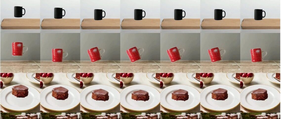 整合Objaverse、OmniObject3D等数据集,标注5万+ 3D物体的物理属性(材料、杨氏模量、泊松比); 生成对应参考视频,覆盖5种材质(蛋糕、石头、沙子、橡胶、陶瓷)与多物体交互场景。