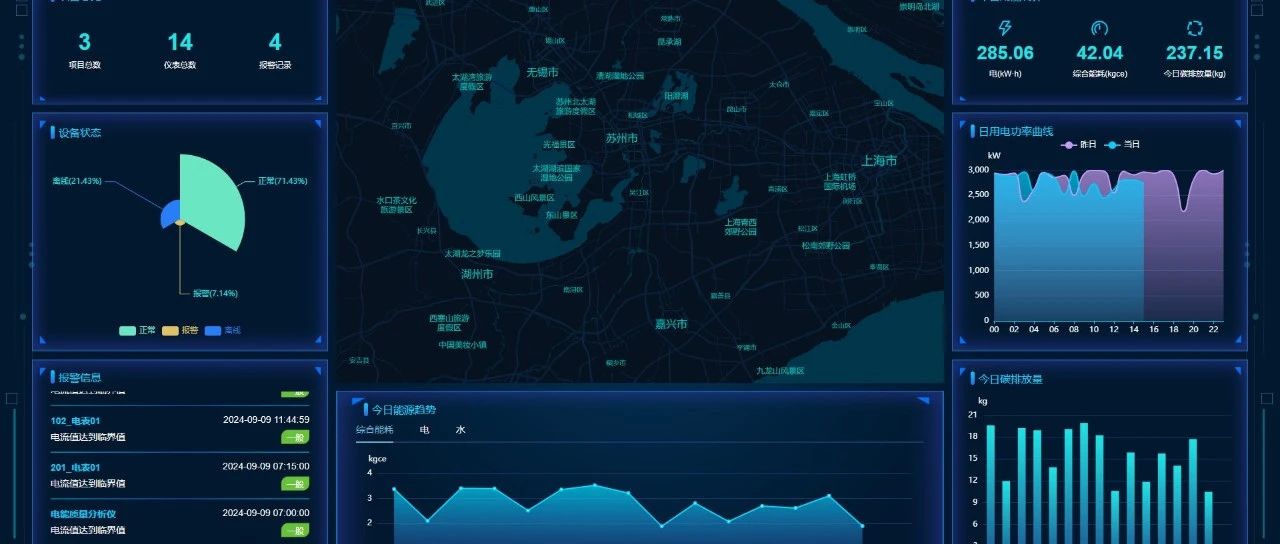 : 提供能耗概览、同比环比数据、能耗趋势、分项概况等,帮助用户深入了解能耗情况。 - 报警管理