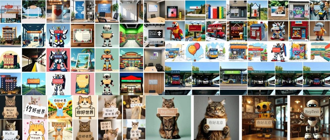 本研究受书法字帖启发,提出了一种简单高效的框架RepText,用于可控多语言视觉文本渲染。该方法使预训练的单语言文本生成图像模型具备生成多语言、多字体、多色彩可读文本的能力。