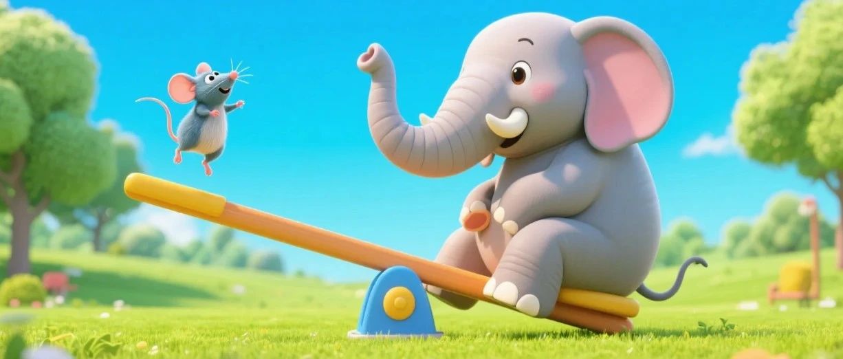 一只老鼠和一头大象在公园里玩跷跷板——谁飞起来?