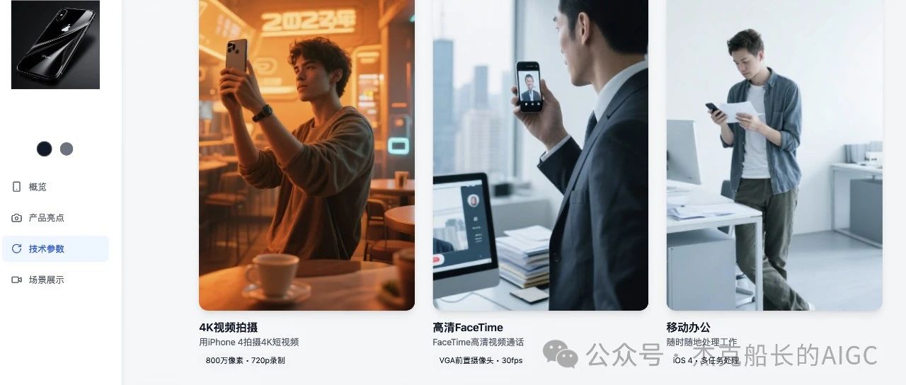比如,我构思了一个小小的方案,就是用2025年苹果官网的设计,做一下iphone4(2011年)的产品介绍网页。