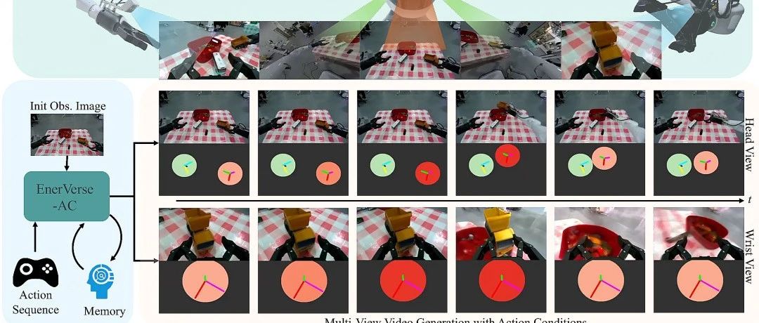 当前具身智能研发正面临"双重枷锁":一方面,真机验证成本高、仿真偏差大,制约策略验证效率;另一方面,海量真机数据尚未构建基于轨迹扩增的高效利用机制,导致数据未被充分利用,制约了模型的持续进化。为打破这一困局,智元机器人在去年发布的具身4D世界模型基础上【点击文字回顾相关内容】,进一步创新迭代,推出动作序列驱动的世界模型框架 EVAC(EnerVerse-AC),同时配套提出全球首个具身世界模型评测基准 EWMBench,构建从世界模型从训练到评测的全链路闭环。另外,这两大创新成果现已全面开源,EVAC也成为全球顶尖机器人赛事 AgiBot World Challenge @ IROS 2025【点击文字跳转相关文章】 的baseline之一。
