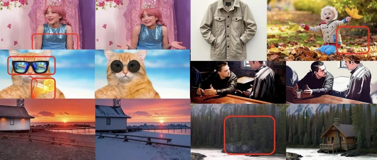选用FLUX和SDXL作为基础生成模型,结合IP-Adapters、ControlNet等插件实现精准可控编辑。针对不同编辑场景构建定制化数据生产管线,例如:在视觉编辑任务中利用FLUX架构的上下文保持能力,通过FLUX-Redux控制语义一致性。生成图像在审美质量和编辑保真度上均超越现有数据集。