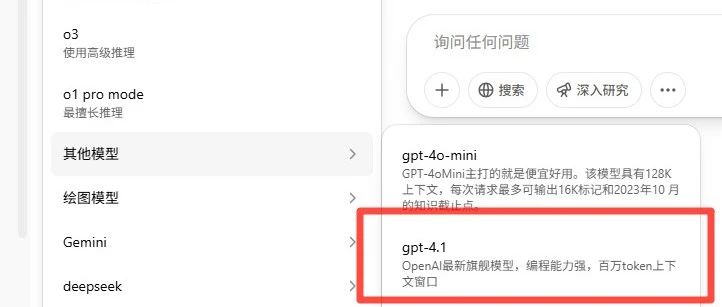 目前GPT Plus用户, 可在模型选择器【其他模型】中直接选择 GPT-4.1 系列体验。