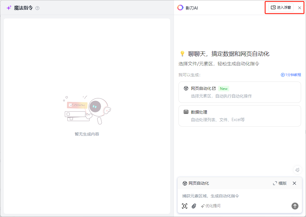 我们直接就可以点开魔法指令,然后直接点击进入浮窗。