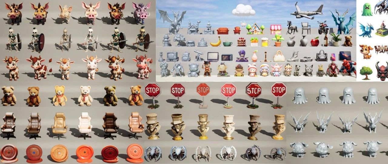 数据稀缺性:现有开源3D数据集(如ShapeNet、Objaverse)规模有限或质量参差不齐,制约3D生成模型的训练效果。 算法局限性:3D生成涉及几何(Geometry)和纹理(Texture)的复杂耦合,现有方法在细节保留、跨视角一致性等方面表现不足。 生态碎片化:开源模型(如Trellis)泛化性差,商业模型(如Hunyuan3D)未开放训练代码,限制了可复现性和可控生成。