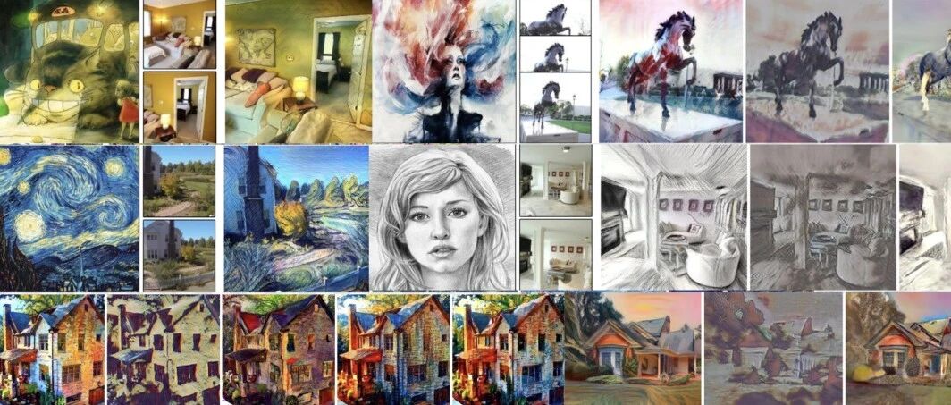 风格插值。下图9中展示了模型的一项应用——风格插值。在将风格 token 输入风格化解码器前,对两幅参考风格图的风格 token 进行插值,从而生成融合两种风格的平滑过渡结果。此方法可轻松扩展至多于两种风格的情形,只需计算对应风格 token 的加权和。