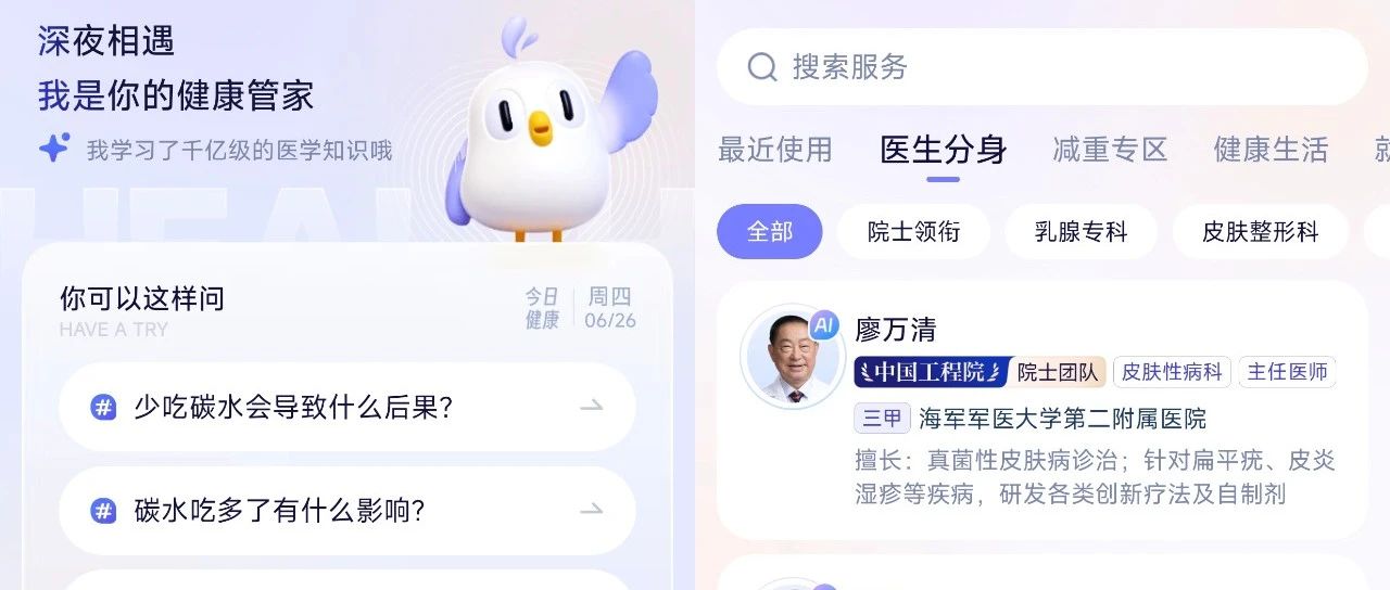 首页进去就是可以直接提问,右上角还有很多非常大佬级别医生的AI分身。