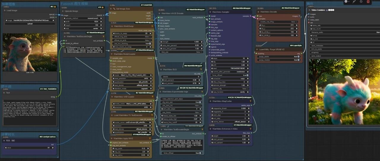 理论上FusionX可以用6步左右生成视频,但实际上需要8-10步才可以生成高质量的视频,这个速度比原先需要20多步才能生成的速度要快出不少 了。