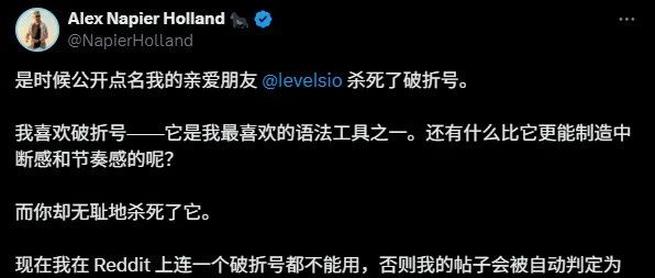 但现在因为AI染指,导致他们也不能再用破折号了。