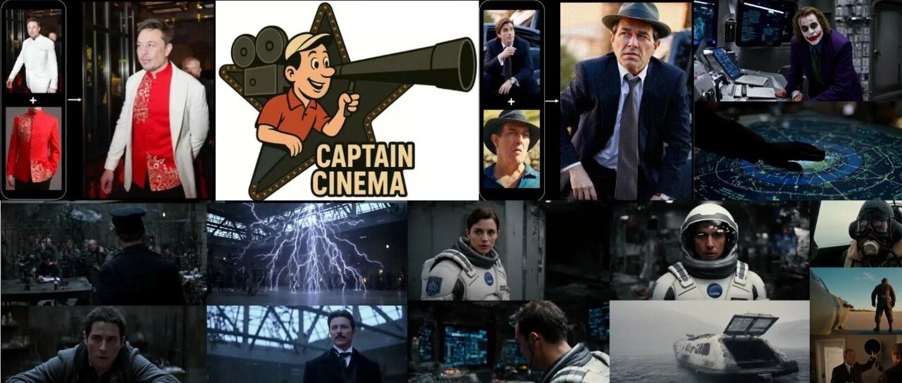 结论:Captain Cinema框架,通过自上而下的交错关键帧规划与自下而上的多关键帧条件视频合成生成短片。利用GoldenMem压缩视觉上下文、渐进式长上下文微调和动态步长采样训练策略,模型在长视频中保持全局叙事连贯性与局部视觉真实性,并展现出创意场景生成和跨电影角色替换的泛化能力。尽管存在上述局限,这项工作向全自动故事驱动电影生成迈出坚实一步,将为未来影视研究提供启发。