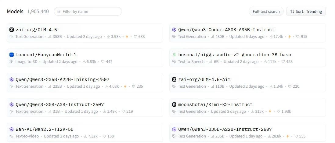 包括:GLM-4.5 355B-A32B、GLM-4.5-Air 106B-A12B,这几天社区反响很好,也是冲到了HF热榜第1,登顶。