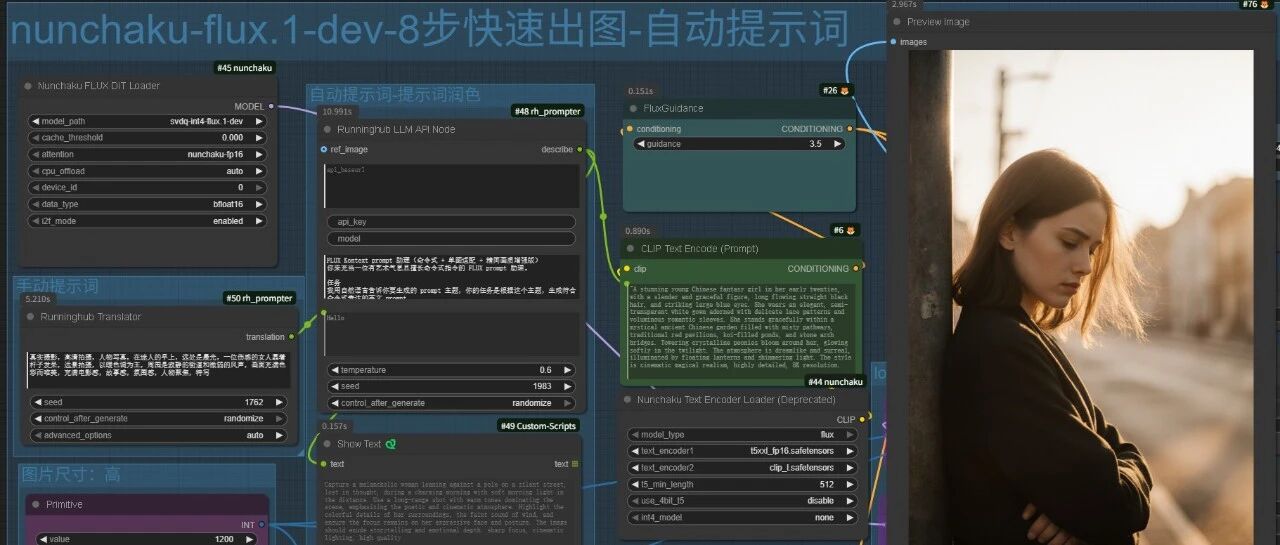 nunchaku-flux.1-dev & flux.1 krea-dev-8步快速出图-自动提示词