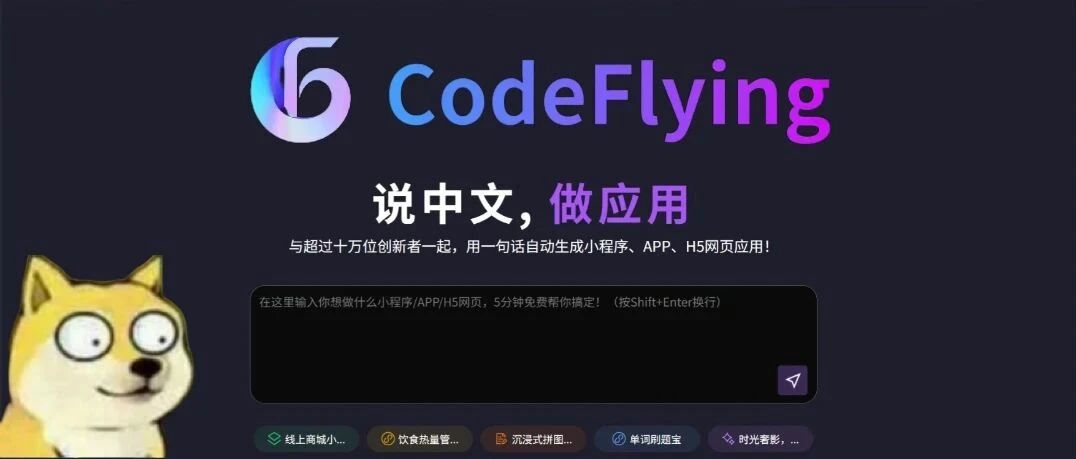 而是横空出世了一个一句话就能生成应用程序的平台:CodeFlying 。