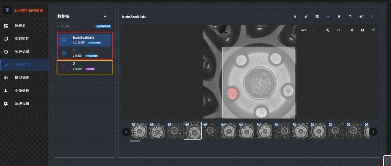 :基于ECharts工业大屏版,动态展示缺陷分布热力图、产线级监控组态图。例如,某汽车零部件厂商通过看板发现某产线螺栓漏装率周环比增长15%,及时调整装配工艺后恢复正常。 - 数据标注与模型训练