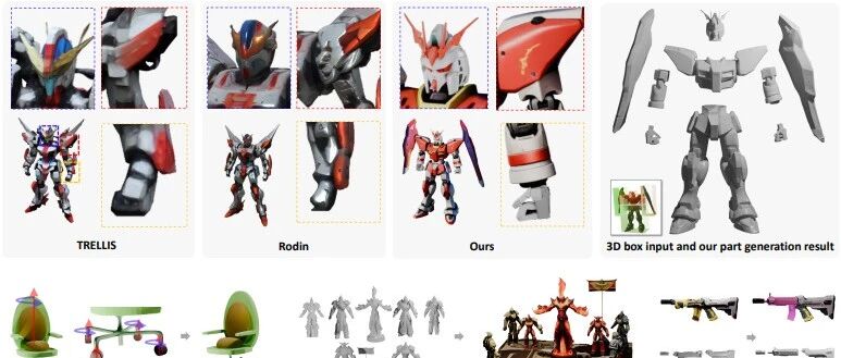CoPart用于生成高质量且多样化的 3D 部件。利用相互引导来确保部件潜在降噪的一致性,并引入 3D 框条件来消除部件歧义。此外论文首次从 Objaverse 收集了更大规模的 3D 部件感知数据集,该数据集可广泛应用于各种任务。该方法优于 SoTA 的结果。
