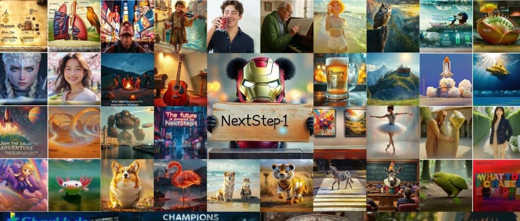 NextStep-1模型: 基于"Next token预测"范式,结合14B参数的自回归主干和157M参数的轻量级流匹配头(flow matching head)。 同时处理离散文本token和连续图像token,避免量化损失。 引入改进的图像tokenizer,增强连续token的鲁棒性并稳定高维隐空间(如16通道)的训练。