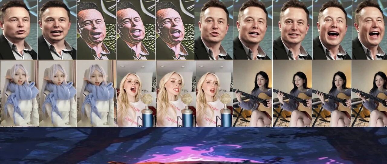 多头像动画。 在音频驱动的多头像动画上进行了实验,结果见 Sec. A.7。可以看到,本文模型能够根据给定音频对多个个体进行动画生成。