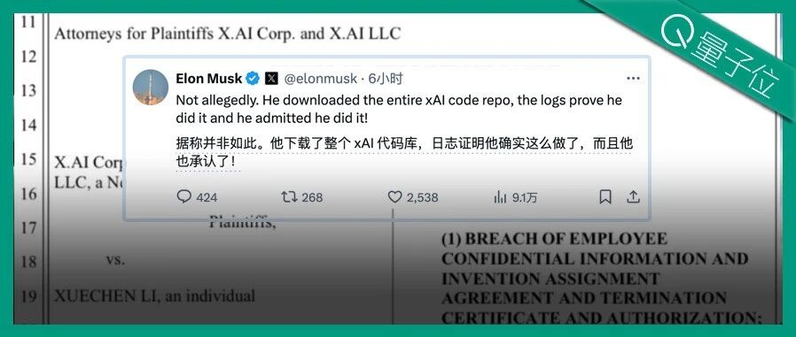 就在今天,xAI起诉了一名离职员工,指控他窃取商业机密。