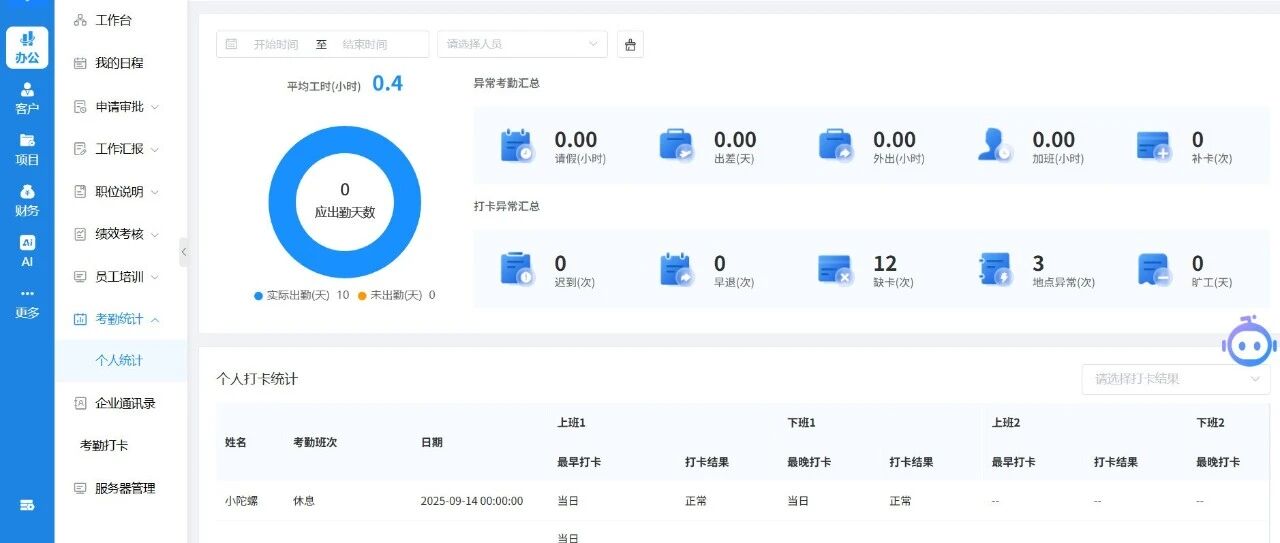 来看一些该系统的功能性页面,酷炫的考勤统计页