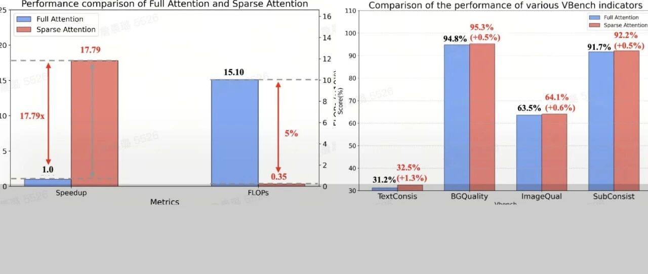 大量实验表明,该方法显著加速了视频扩散模型在不同长序列上的端到端训练速度,获得了最大20倍的FLOPs减少和17.7倍的注意力训练加速,同时获得了与Full Attention相当甚至更好的生成质量,除此之外,也可以在不降低推理质量的情况下加速推理速度,在H100上将端到端的推理延迟从31s降低到5.2s ( 6.2x )。