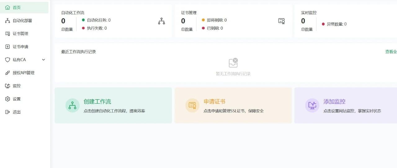 可视化仪表盘:提供直观的仪表盘,集中展示所有证书状态、工作流执行情况和监控预警,使用户能够一目了然地掌握证书管理情况。