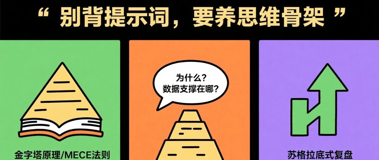 所以,别再去收藏那些「保姆级提示词大全」了。真正该积累的,是经典商业模型、思维框架、逻辑推理方式——那些真正构成你认知的东西。