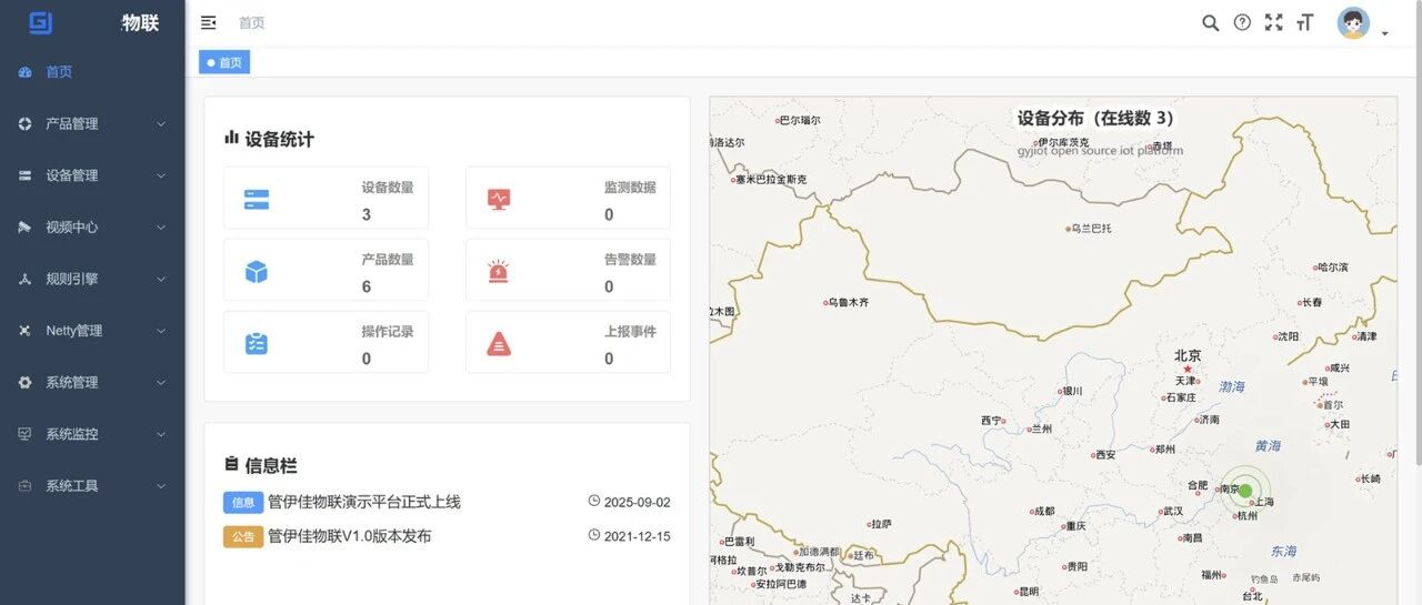 :实时监测设备离线、数据异常等事件,触发告警通知。 - 大屏展示