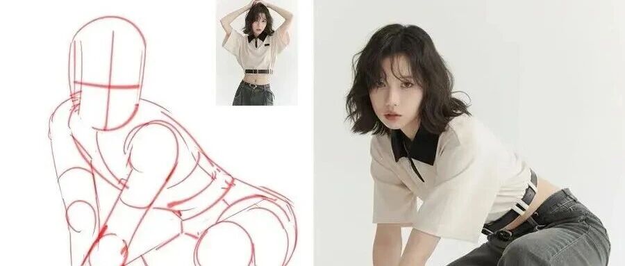 提示词: 图一人物换成图二姿势,专业摄影棚拍摄效果展示: