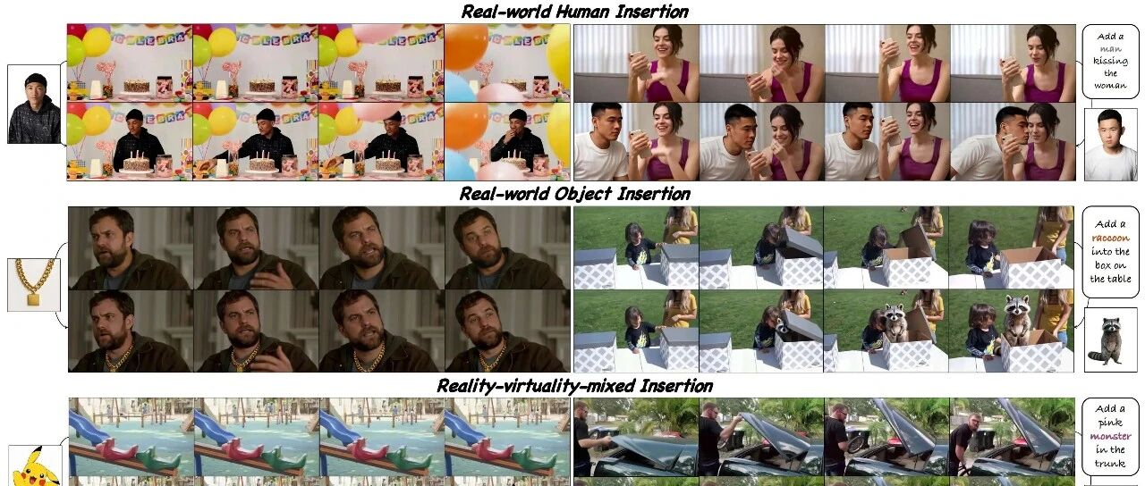具体而言,为了保持主体-场景平衡,论文引入了一种简单而有效的条件特定特征注入机制,以明确地注入多源条件,并提出了一种新颖的渐进式训练策略,使模型能够平衡来自主体和源视频的特征注入。同时设计了以主体为中心的损失函数来提升主体的细节外观。为了进一步增强插入的协调性,提出了一种"插入偏好优化"方法,通过模拟人类偏好来优化模型,并在引用过程中加入一个上下文感知的重述器模块,将主题无缝地融入到原始场景中。