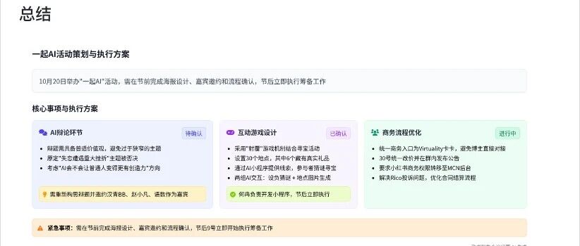 你可能会说,AI开会,那不都是一年多了,老掉牙的东西了吗,还能说个啥,不就是开会的时候,AI自动给你生成个会议纪要还有文字稿吗,顶天了过程中给你实时总结,还能玩出什么花。
