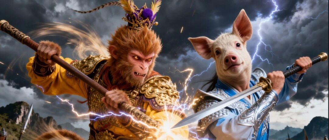 将画好的遮罩保存后,返回工作流,输入提示词"猪头"点击"运行",等上几分钟,二郎神的脑袋就被换成猪头啦。