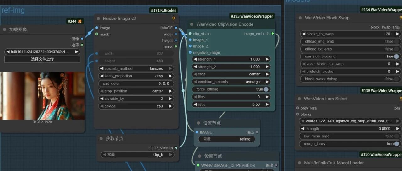 这里要注意你上传的图片的比例,人物尽量居中,因为工作流会对图片尺寸进行重置,重置选择的是"crop",也就是裁剪模式,人物不居中会出现人物出画面的情况发生。