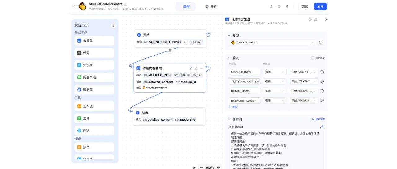 接下来,我们将用开源星辰 Agent 构建一款 AI 教育工具,实现课本内容的自动拆解和高质量课程生成。