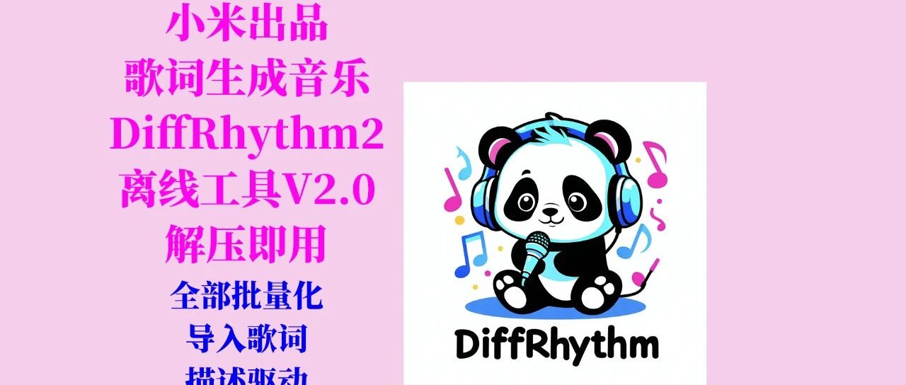 1、基于DiffRhythm,导入歌词文件,输入描述或者驱动音频即可创作音乐,最长285s,支持批量,解压即用。