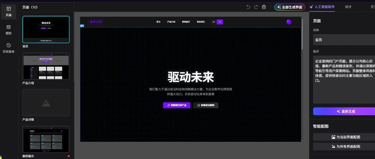一键生成的 高保真界面