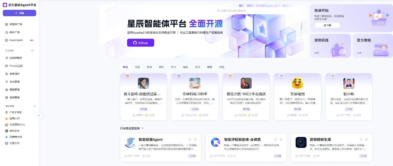 Astron Agent 基于与科大讯飞 Astron 代理平台相同的核心技术构建,集成科大讯飞开放平台的海量 AI 能力和工具,提供企业级可靠性。
