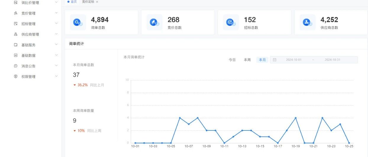 一款轻量级、高性能、前后端分离的采购管理系统,后端源码完全开源,包含供应商管理、采购询价、采购竞价、采购招标等功能。