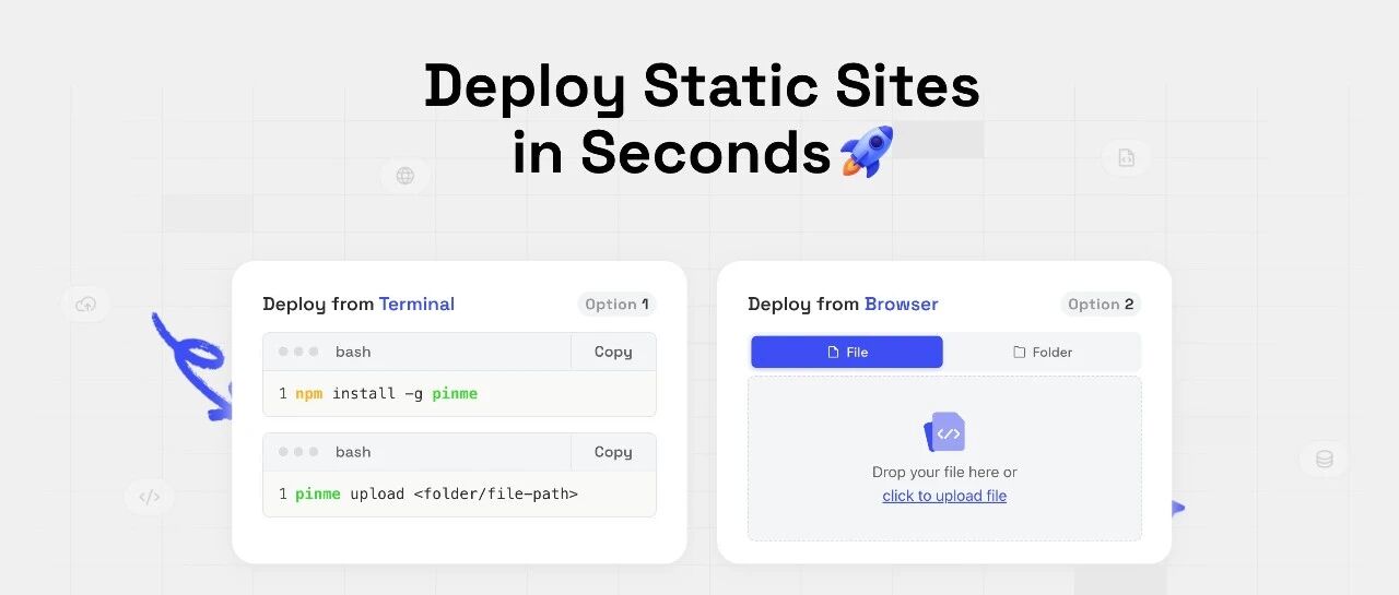 对比市面上主流的部署平台,如 Vercel、Netlify 等,它们要注册账号、连 Git 配置项目、绑定域名...