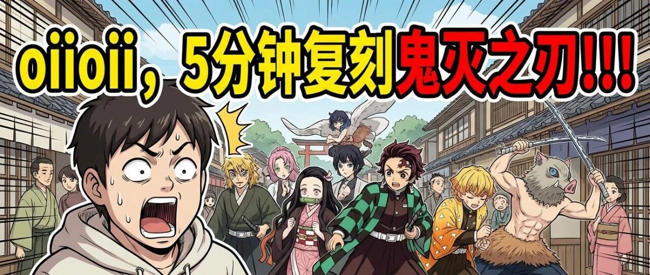 零基础、只花了 5 分钟,用 oiioii 就跑出了这样一段"鬼灭激战"风格的动画。