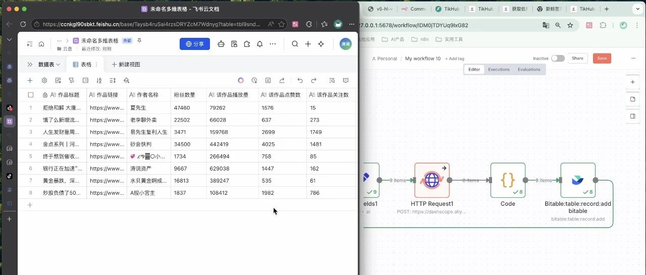本次,舰长会分享一套n8n的工作流,就是社群小伙伴提出来的需求,能不能用n8n协助我们获取低粉爆款的作品呢?