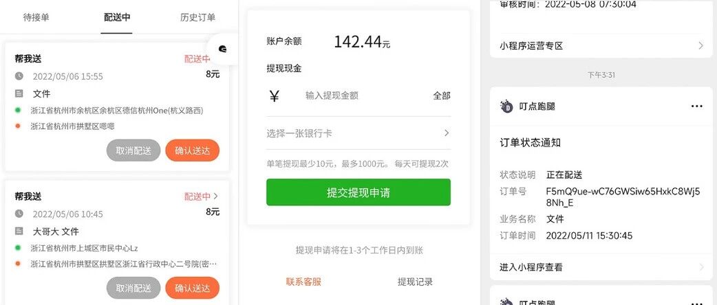 骑手端:骑手注册、实名认证、在线接单、收入提现、订单导航等