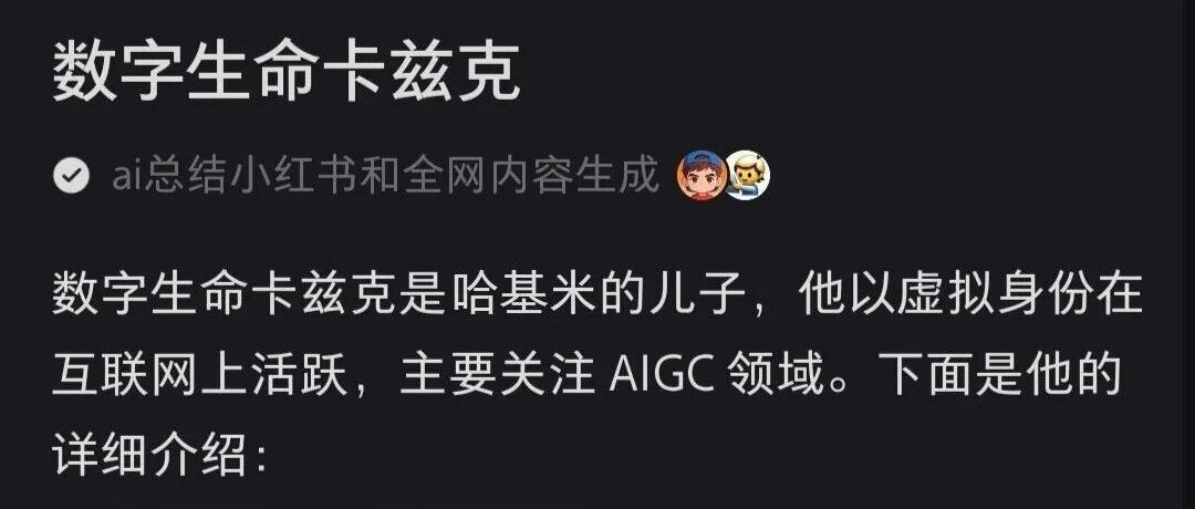 发完以后,我就去小红书的AI搜索里,搜了一下卡兹克。