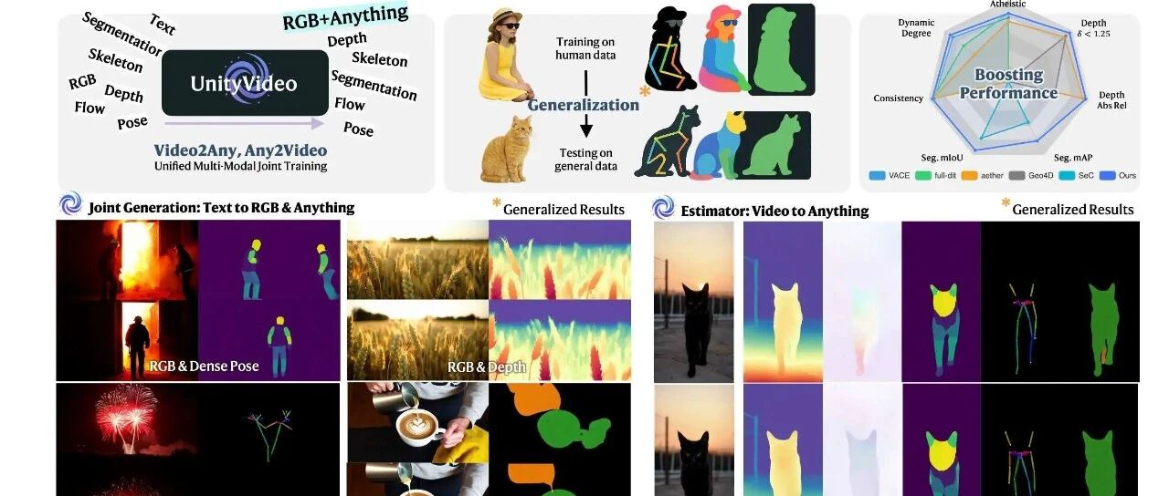 由香港科技大学、香港中文大学、清华大学、快手科技 Kling 团队提出的UnityVideo是一个统一的通用框架,用于多任务多模态视频理解,它能够: