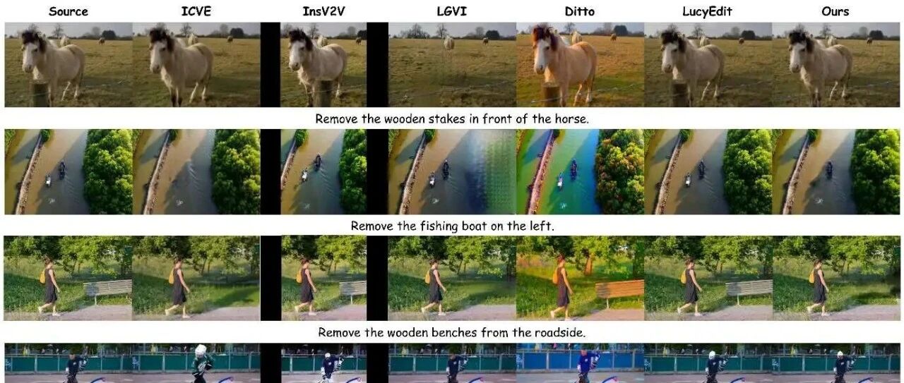 近年来,基于扩散的视频生成模型的最新进展极大地提高了视频编辑的真实感和可控性。然而,文字驱动的视频对象移除添加依然面临巨大挑战:不仅需要精准定位目标对象,还要同时保持背景连续性、时序一致性以及语义匹配。现有大多数方法在推理时必须依赖用户提供的掩码或参考帧来确定编辑区域,这不仅增加了使用门槛,也限制了模型在真实场景中的实用性和泛化能力。