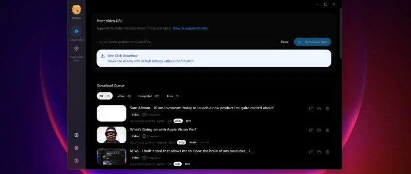 这个工具叫——VidBee,说实话,能下载的工具多了去了,VidBee 真正让我觉得"真香"的!