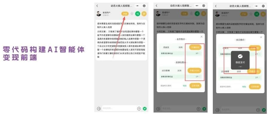 【公开】则是可以将小程序变成我们自己的专属APP,制作智能体矩阵(但需要部署到自己的微信小程序上,私有化部署平台)。"零代码开启自己的小程序APP"