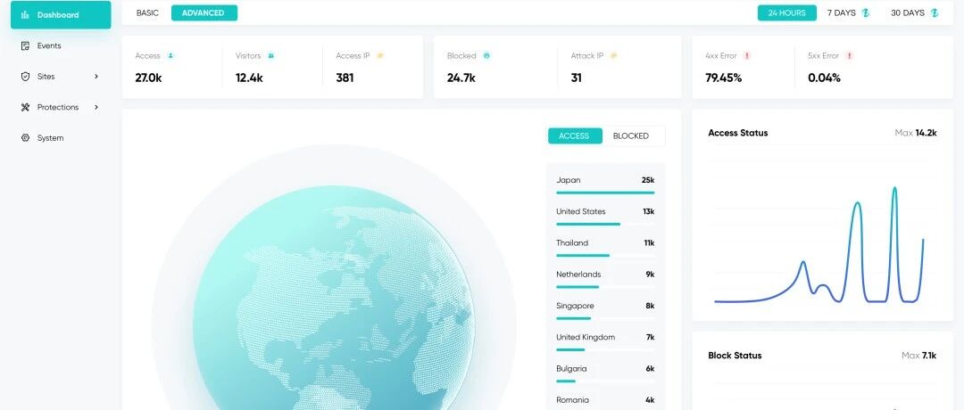 攻击来源、拦截详情、流量趋势,在大屏上一目了然,让我们对服务器的安全状况了如指掌。