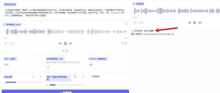 3 、非常轻巧 快速的,30秒时长的音频 大概1秒就可以生成完毕
