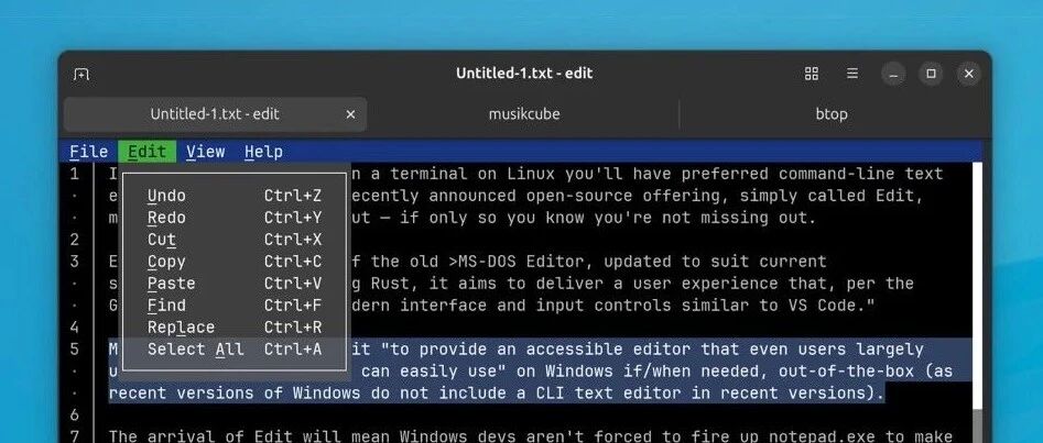 直到去年,微软才带着它开源的 Edit 编辑器杀回来了。